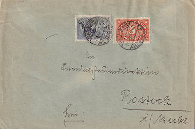 Inlandsbrief (1-20 g) vom 23.12.1922 frankiert mit 2 Marken (=25 Mark)