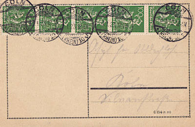 Ortspostkarte vom 03.01.1923 frankiert mit 5 Marken a 100 Pfennig (=5 Mark)