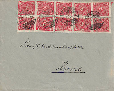 Inlandsbrief (1-20 g) vom 02.03.1923 frankiert mit 10 Marken a 10 Mark (=100 Mark) |