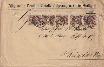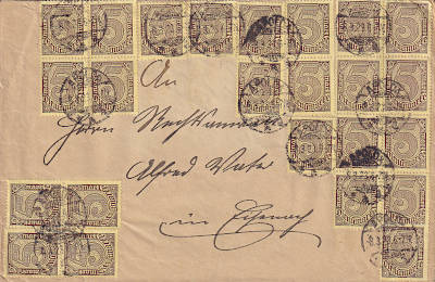Inlandsbrief (21-100 g) vom 08.03.1923 frankiert mit 24 Marken a 5 Mark (=120 Mark) |