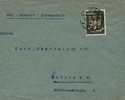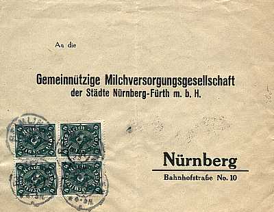 Inlandsbrief (1-20 g) vom 13.03.1923 frankiert mit 4 Marken a 25 Mark (=100 Mark) |