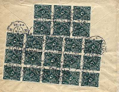 Inlandsbrief (1-20 g) vom 08.03.1923 frankiert mit 25 Marken a 4 Mark (=100 Mark) |