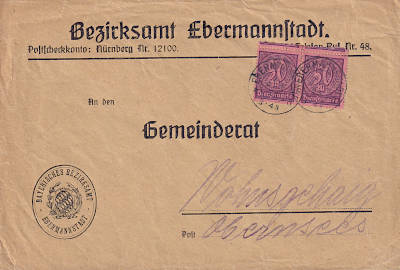 Inlandsbrief (1-20 g) vom 23.04.1923 frankiert mit 2 Marken a 50 Mark (=100 Mark) |