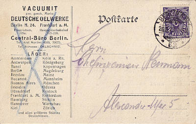 Ortspostkarte vom 26.03.1923 frankiert mit einer Marke a 20 Mark (=20 Mark)