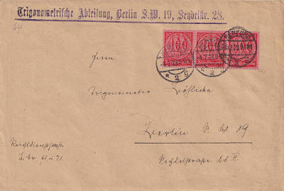 Inlandsbrief (1-20 g) vom 04.07.1923 frankiert mit 3 Marken a 100 Mark (=300 Mark) |
