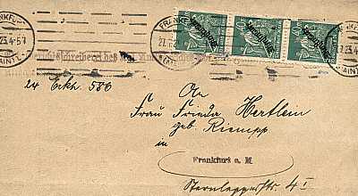 Ortsbrief (101-250 g) vom 17.07.1923 frankiert mit 15 Marken a 20 Mark (=300 Mark)