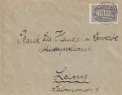 Ortsbrief (1-20 g) vom 15.08.1923 frankiert mit einer Marke a 400 Mark (=400 Mark) |