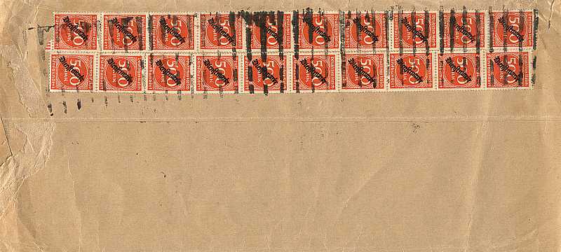 Ortsbrief (101-250 g) vom 24.08.1923 frankiert mit 40 Marken a 500 Mark (=20 000 Mark) |