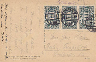 Ortspostkarte vom 17.09.1923 frankiert mit 3 Marken a 5 000 Mark (=15 000 Mark)