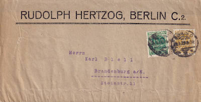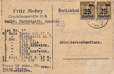 Inlandsdrucksache (1-25 g) vom 30.09.1923 frankiert mit 2 Marken a 25 000 Mark auf 25 Mark (=50 000 Mark)