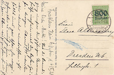 Inlandspostkarte vom 04.10.1923 frankiert mit einer Marke a 800 000 Mark auf 1 000 Mark (=800 000 Mark) |