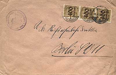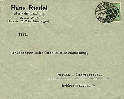 Ortsbrief (1-20 g) vom 06.10.1923 frankiert mit einer Marke a 800 000 Mark auf 5 Pfennig (=800 000 Mark) |