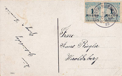 Foreign postcard up to 5 words from 31.10.1923 franked with 2 stamps a 1 Million Mark (=2 Million Mark)