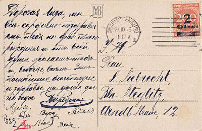 Local postcard from 23.10.1923 franked with one stamp a 2 Million Mark on 200 Mark(=2 Million Mark)