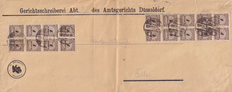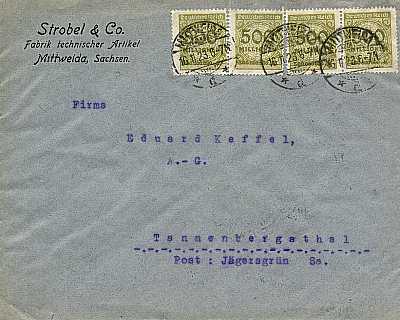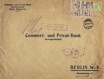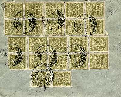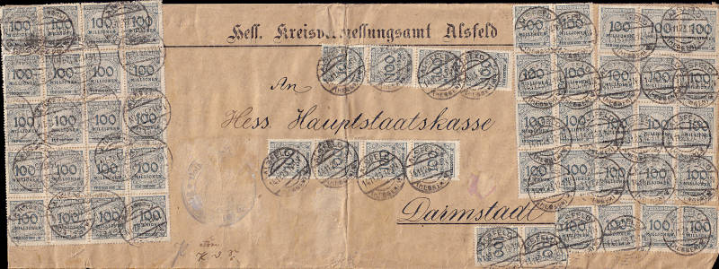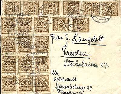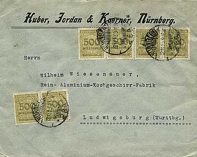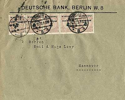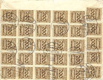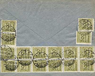 Inland cover (1-20 g) from 14.11.1923 franked with 5 stamps a 2 Billion Mark (=10 Billion Mark) |