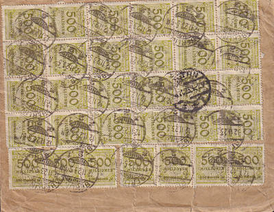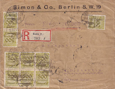 Inlandsbrief mit Einschreiben (1-20 g) frankiert mit 10 Marken a 2 Milliarden Mark (=20 Milliarden Mark, 10 Milliarden Brief 10 Milliarden Einschreiben)