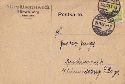 Inland postcard from 24.11.1923 franked with one stamp a 10 Billion Mark (=10 Billion Mark)