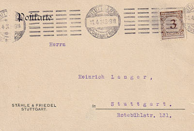 Inland printed matter (1-50 g) from 11.04.1924 franked with one stamp a 3 Pfennig (=3 Pfennig)