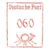 Einkreisstempel mit Steg-segment oben mit fünf-stelliger Postleitzahl in rotoder blau