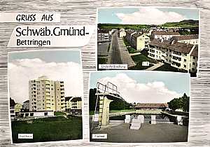 Ober- / Unterbettringen Lindenfeld- siedlung, Hochhaus und Freibad 1967 |