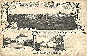 Oberbettringen Teilansicht, Rathaus und Gasthaus zum Hirsch 1905 |