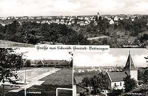 Ober- / Unterbettringen Teilansicht, Ottilienkirche, Freibad und Schule 1960 |