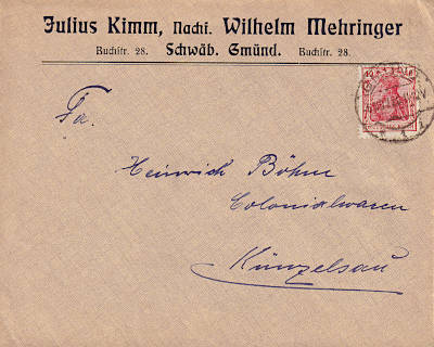 Ortsbrief mit Einschreiben (1-250 g) vom 07.02.1911 (1. Periode) frankiert mit 2 Marken (=25 Pfennig, 5 Brief 20 Einschreiben) |