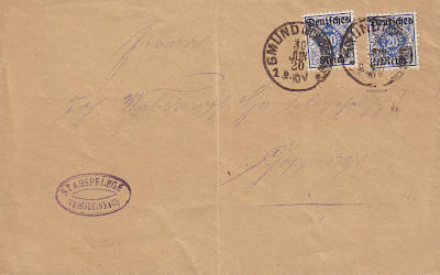 Inlandsbrief (1-20 g) vom 06.11.1920 (5. Periode) frankiert mit einer Marke a 40 Pfennig (=40 Pfennig) |
