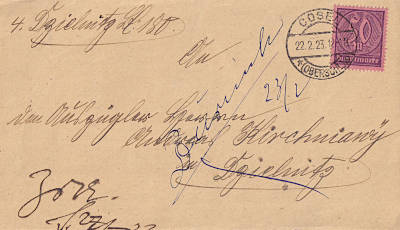 Inlandsbrief (1-20 g) vom 10.02.1923 (12. Periode) frankiert mit einer Marke a 50 Mark (=50 Mark) |