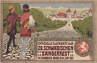Abbildung: | 2 Sänger und Stadtansicht |
