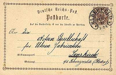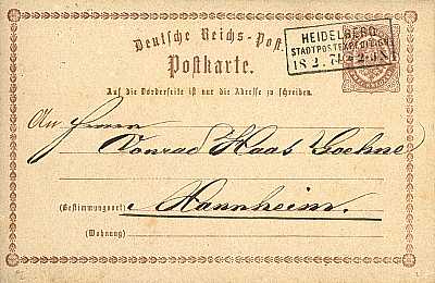 Inland postcard from 07.04.1873 franked with one stamp impression a ½ Groschen (=½ Groschen)