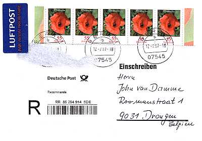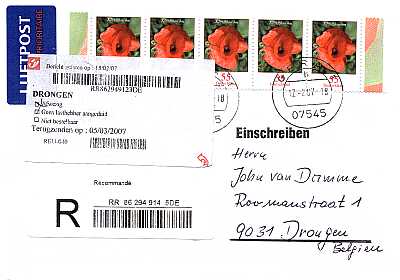 bei diesem Einschreibebrief wurde das Benachrichtigungslabel so aufgeklebt, dass es beim Entfernen den Umschlag und die Briefmarken in Mitleidenschaft gezogen hat