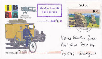 Rosengarten: Inlandsbrief (1-20 g) vom 19.09.1997 mit violettem Rechteckstempel mit Zeile (3z) "Gebühr bezahlt/ Taxe perçue/ DM Pf" und handschriftliche Gebührenhöhe "10" |