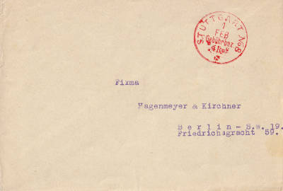 Stuttgart 8: Inlandsdrucksache (21-50 g) vom 01.02. mit rotem Einkreisstempel (bo3zbu) "STUTTGART No8/ (Datum)/ Gebühr bez./ 4 Rpf" |