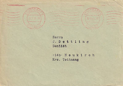 Stuttgart 9: Inlandsbrief (1-20 g) vom 11.03.1960 mit rotem Zweikreisstegstempel (boz2bu) "(14a) STUTTGART 9/ (Datum)/ pp/ Bezahlt" |