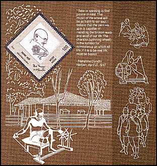 12.02.2011 Mahatma Gandhi with glued on khadi fabric