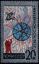 12.04.1965 Cosmonauts´ Day printed on paper laminated with aluminum foil