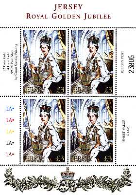 06.02.2002 50th anniversary of the coronation of Queen Elizabeth IIwith 3 embossed metal foils: 2 in gold (22 and 24 karat) and one in silver