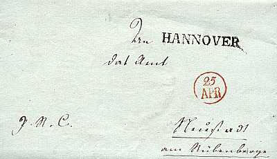 schwarzer Einzeiler "HANNOVER" auf Brief vom 25.04.1816 nach Steinstadt