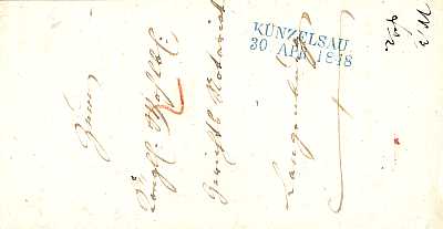 | blauer Kreissegmentstempel mit Kreis "GROSSBOTTWAR/ 18 AUG 1847" auf Nachnahmebrief nach Ringelberg |