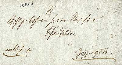 schwarzer Einzeiler "LORCH" auf Brief vom 04.04.1814 nach Göggingen |