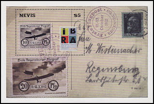 Bavaria 5 Pfennig 1911 and air mail stamp Regensburg on postcard