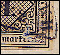Damaged postage stamp design print: postage stamp design print with quality defect originated by wrong handling |