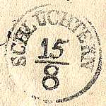 Thimble Hand Postmark: philatelic term for a hand postmark from the classical period with a very small diameter |