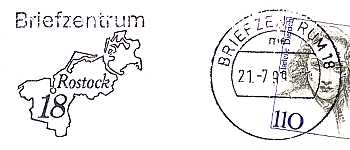 Letter Center Machine Insertion: part of a machine postmark that e.g. shows build-ings from the region of the letter center |