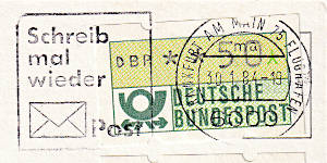 Self-promotion Machine Insertion: part of a machine postmark that advertises postal services |