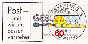 Posting Machine Postmark: cancellation stamp of a post office that contains the place and the date of delivery of a postal shipment (day machine stamp) |