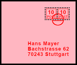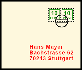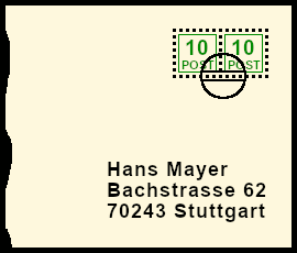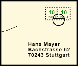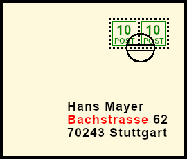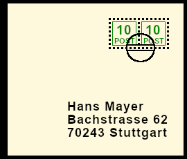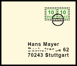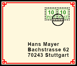 Supplemented Postal Marking: original postal shipment with deceitful bogus postal marking |