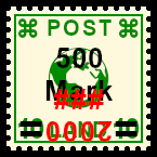 Forgery With Second Over- print: deceitful reprint of a postage stamp, all parts are bogus (design print, perforation, second overprint) |