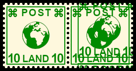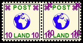 Pair With Design Print Colour Mistake: printers term for a pair one postage stamp with a deviation caused by mistake from the intended design print colour |